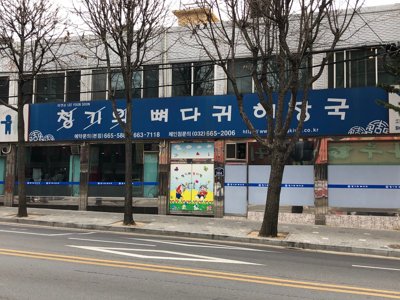 여기가 부천 청기와 뼈다귀해장국의 본점이다. 다른 식당은 고기가 치킨처럼 퍽퍽한데 여기는 고기가 매우 부드럽다. 국물이 깊은 맛이 있다. 가격은 9500원으로 가성비가 아주 좋다. 고기가 매우 신선하다. 요리를 지금 막 한 것처럼 모두 신선하다. 매장 영수증 지참하면 주차는 무료이다. 매장 뒤에 아주 넓은 주치장이 있다. 나는 수도권 출장 갈때는 항상 이곳을 이용한다. 여기는 주문하면 1분도 안되어 음식이 즉시 나오는 장점이 있다. 맞은편에 유명한 갈비탕집에 있는데 그곳이 여기 때문에 장사가 어려워졌다는 소문이 있다. 그정도 맛에 대한 소문은 좋다.